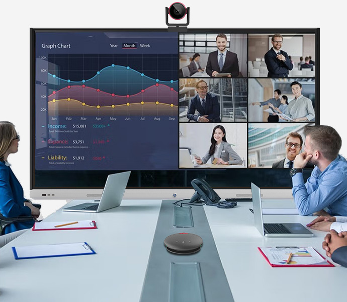 The microphone has a 360° all-round pickup radius of up to 10 meters, full-duplex call technology, intelligent dynamic noise reduction, 384ms cancellation, automatic gain control, high-fidelity speakers, high restoration of human voices, real-time picture synchronization, face-to-face video experience.