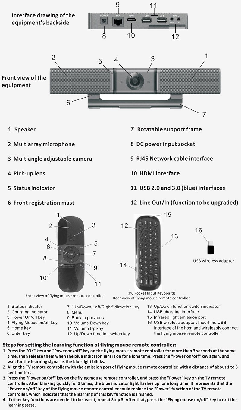 I-5210 (dual microphone version) is an all-in-one smart conference device that integrates a 4K ultra-clear camera, 4 array microphones speakers, exps 2 wireless pickup microphones to increase pickup scenarios. It supports various networking methods such as Ethernet WiFi, supports HDMI connection to large screens. It can be operated used through external mice, infrared remote controls, flying squirrels other devices. It is easy to deploy operate, is suitable for application scenarios such as daily corporate meetings, distance education training, live video broadcast, telemedicine, distance teaching.