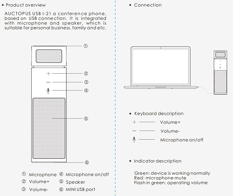 The I-21 is a USB-connected, microphone-speaker conferencing microphone for small video conferences of 6-10 people. It can also be used in personal business, home or leisure entertainment venues.