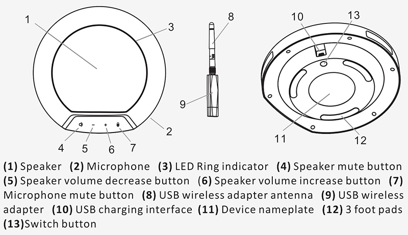 I-53W omnidirectional microphone is a two-stage cascade HD omnidirectional microphone speaker equipment with 2.4G wireless connection, 2.4G wireless omnidirectional microphone conference phone based on Internet communication, with software video conference system, making the conference more convenient. No need to install drivers, plug play, can be used as a portable external microphone speaker for the computer, corresponding high-definition music playback high-definition recording.