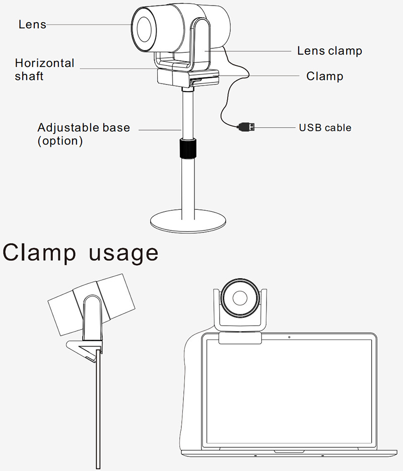 Support 1080P HD pixels 120° wide-angle video conference camera for formal, wall flip versions; USB connection to computer, plug play without installation; Universal retention clip for a wide range of displays.