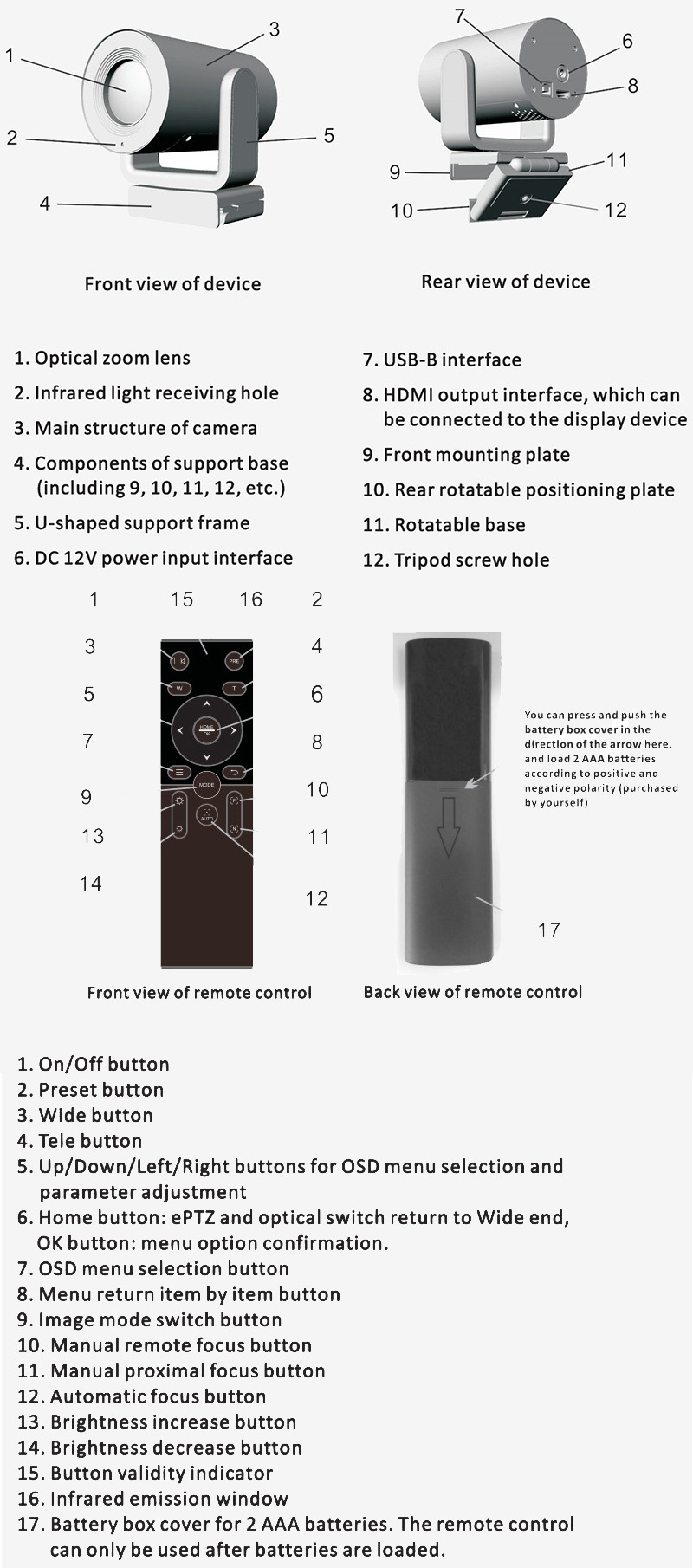 4K picture quality, 20x optical zoom live camera, built-in brightness adjustment, USB data cable connected to the host at the same time can be connected to the HDMI data cable to the monitor. With remote control, the main can be adjusted: zoom in out zoom, brightness adjustment