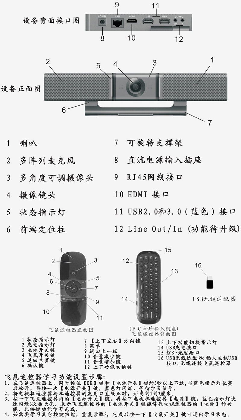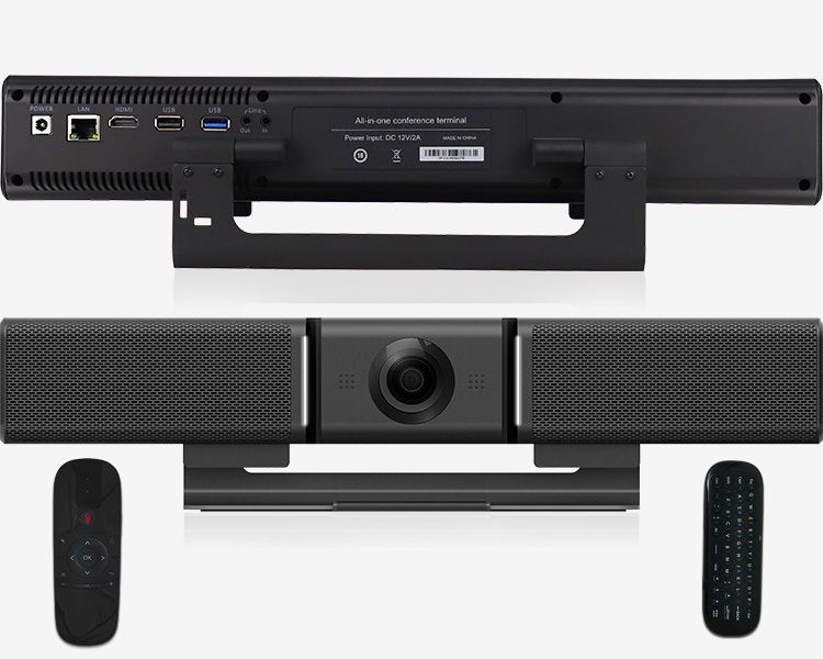 音視頻一體會(huì)議設(shè)備I-88配置1080P高清120°廣角攝像頭負(fù)責(zé)圖像傳輸,集4個(gè)陣列麥克風(fēng)揚(yáng)聲器負(fù)責(zé)音頻輸入輸出。帶安卓8.1操作系統(tǒng),可自行安裝視頻會(huì)議軟件,外接顯示屏后即可開(kāi)啟視頻會(huì)議。