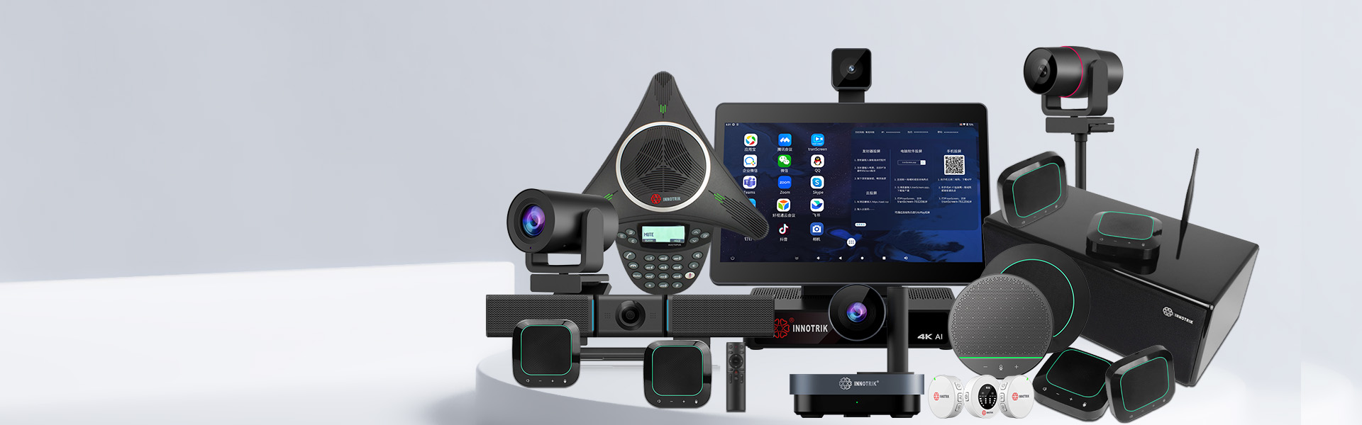 配置2.4G無(wú)線連接會(huì)議電話,將有源音箱與音頻控制終端連接,可實(shí)時(shí)外放通話音頻。