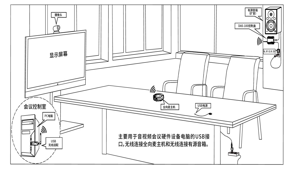 I-30W無線全向麥會議電話是一款基于2.4G無線連接的網(wǎng)絡(luò)會議電話,將有源音箱與音頻控制終端連接,可實時外放通話音頻。