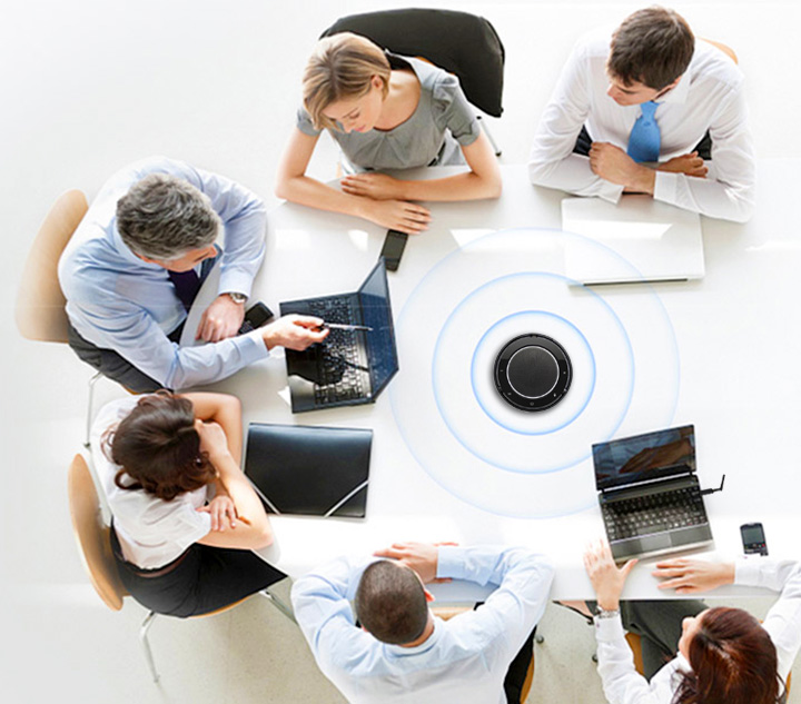 攜帶方便、即插即用、即時通信的全向麥克風(fēng)內(nèi)置鋰電池續(xù)航時間高達8小時,適用于各種中小型會議場景