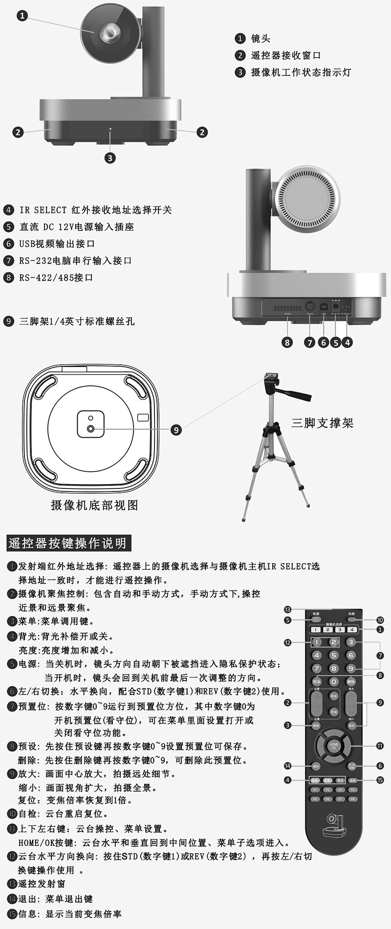 配置10倍光學(xué)變焦云臺(tái)攝像機(jī),配遙控器;通用云臺(tái)解碼器協(xié)議,支持正裝、倒裝,支持預(yù)置位和看守位設(shè)置。電源連接后,USB連接電腦即可使用。